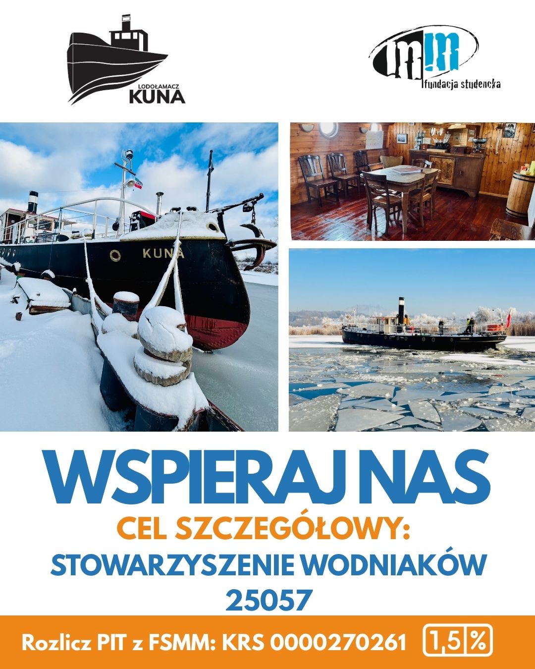 Pomóż nam ożywić serce najstarszego lodołamacza świata! – przekaż 1,5% na MV KUNA! Razem z Fundacja Studencka Młodzi-Młodym ratujemy historię żeglugi.